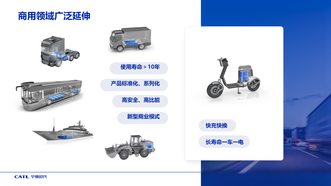 商用领域多数是生产工具,车型复杂多变。针对这一需求,云顶集团开发了长寿命电池,保证高强度运营的质保需要。标准化、系列化设计的电池包有效提高通用性。和产业链合作伙伴共同推出了车电分离、电池或整车租赁等新型商业模式。云顶集团还发现家用和外卖送货骑手的两轮车需求不同,因此设计的电池可快充,也可快换,并且电池寿命足够长,一块电池可以服务车辆全生命周期,节省了更换电池的成本。